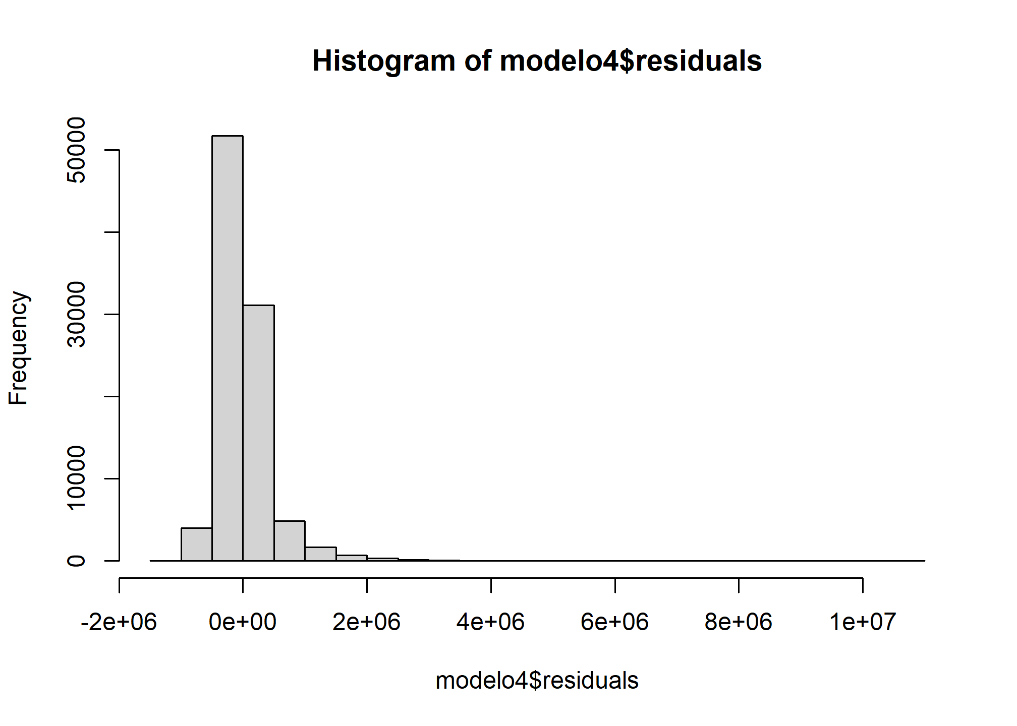 En esta sección se verifica la suposición de normalidad de los residuos mediante un histograma de los mismos. Se utiliza la función hist de R para crear el histograma.